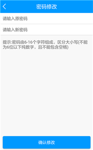 2、在密码修改界面,输入原密码、新密码,点击【确认修改】即修改成功。