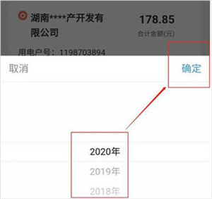 3、在底部弹出的年份菜单中,选择需要查看的年份,点击确定按钮;