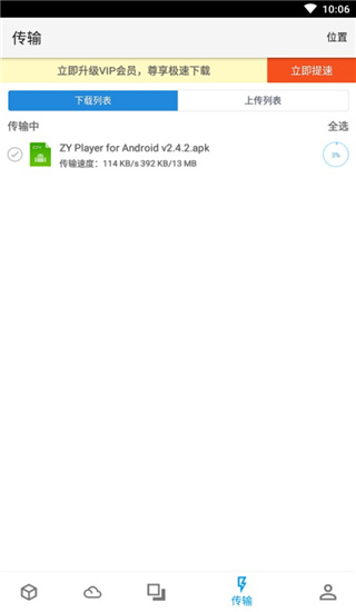 6、点击下载按钮后,就会在软件下方第四个图标传输界面开始下载,如下图: