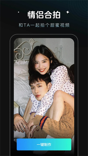 和喜欢的人一起拍个甜蜜的视频吧。只需上传你们的照片,各种视频风格任你选择,更有各类西式、中式婚纱模板,一键生成高清婚礼视频