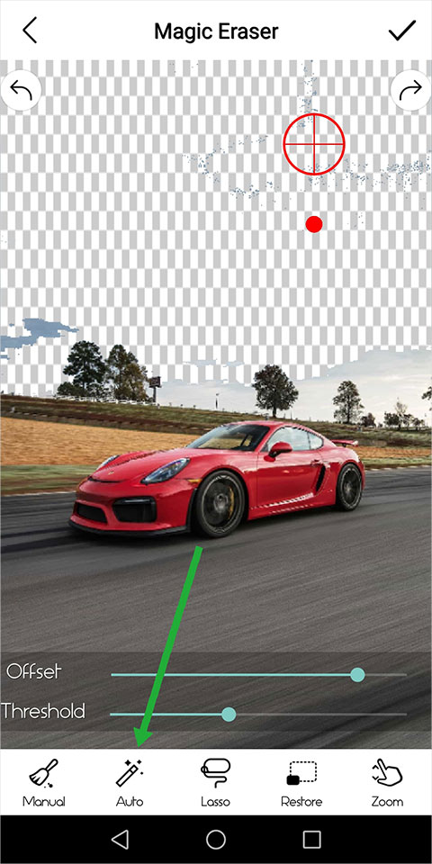 2. 当用户选好图片后,能够在底部工具栏中挑选【Auto】也就是魔棒工具,在设置好相关参数后,就能够在图片上进行涂抹操作。