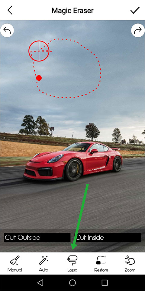 3、要是用户认为精准度欠佳,还能够选用【Lasso】工具,也就是套索工具,同时设定为反向套索或者正向套索,随后在图片上进行涂抹。