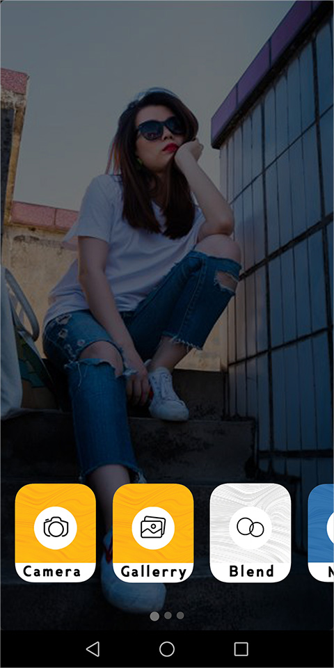 1、用户打开软件界面后,第一步是选择一张需要更换背景的图片。既可以点击【camera】自行拍摄一张图片,也能够点击【Gallerry】从用户手机里挑选需要更换的图片。