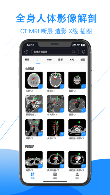 您可随时随地打开APP学习影像解剖知识点和查阅疑难病例诊断技巧和临床经验,学习专业、系统的课程,快速提升基层医生诊断水平和专业技能。