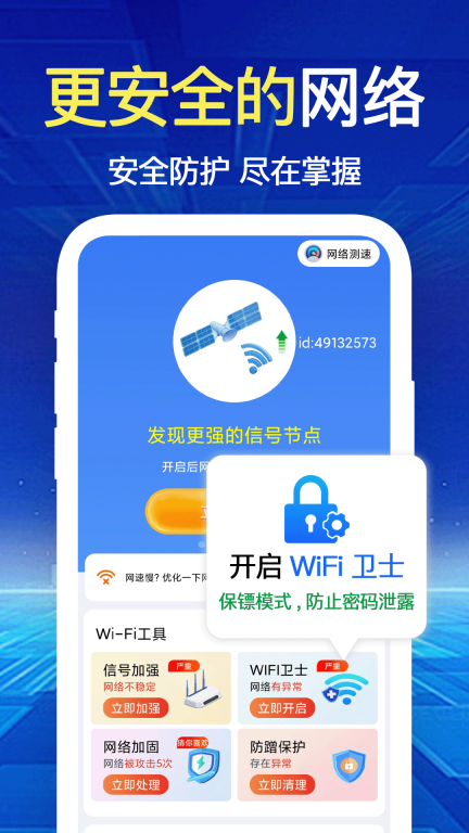 WiFi钥匙速联是一款具有防蹭网、信号增强、WiFi测速、保护WiFi安全的安全上网软件
