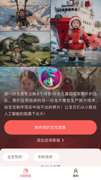 恐一回龙是专注做6个月到10岁儿童超现实照片的团队。我们应用自研的恐一回龙大模型生成照片技术,给宝宝制作现实生活中拍不出的照片!让宝宝们从小就在人工智能的氛围下长大!