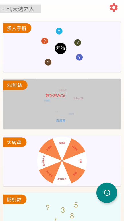 可进行自定义选择,今天是吃什么?穿什么?玩什么?无法决定?不妨天注定吧,手指轻轻一点,见证奇迹的时刻: