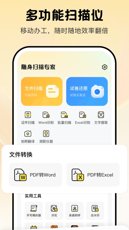 快速扫描文档,自动识边、自动裁剪,透视矫正,支持多种滤镜,一键生成PDF格式,支持添加/去除水印,调整页码、尺寸,设置PDF打开密码等。