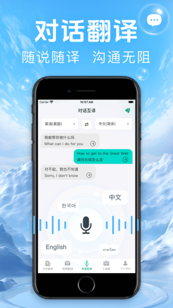 实时翻译官软件免费提供多种语言实时翻译服务,界面简洁,操作便捷。支持文本、语音、拍照等翻译模式,适用于旅行、学习、工作等场景,快速准确传达信息,助力打破语言沟通障碍。