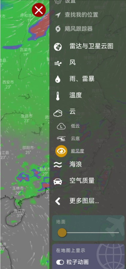 2、为用户提供风向、风速、降雨量、温度等多种天气图层,助力用户更全面地了解天气状况。