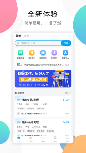 大舟山人才网是一款专为舟山地区求职者与企业打造的本地化招聘平台,提供海量岗位信息、简历投递、职位搜索等功能,涵盖餐饮、旅游、制造业等多个行业,帮助用户高效匹配工作机会,同时支持企业发布招聘信息、筛选人才,致力于成为舟山地区最便捷的就业服务桥梁。