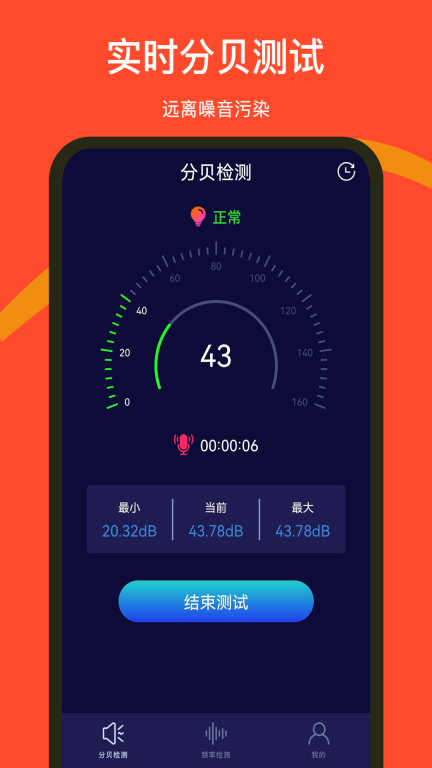 -频率检测:独特算法测试声音频率,频率分贝结果一次显示,保护听觉远离声音污染。