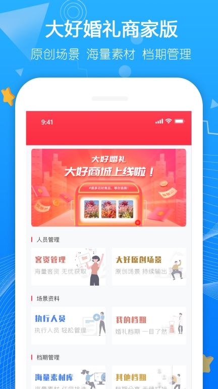 大好商家版是安徽省大好信息咨询有限公司为婚礼企业、婚礼人等开发使用的综合一体化工具。
