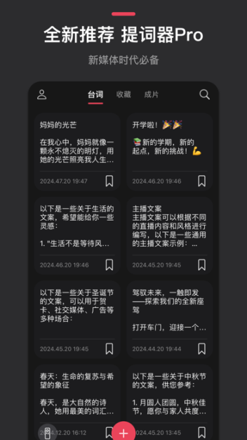 视频提词:高清拍摄滚动提词,自动调节台词播放速度,让您轻松录制短视频。