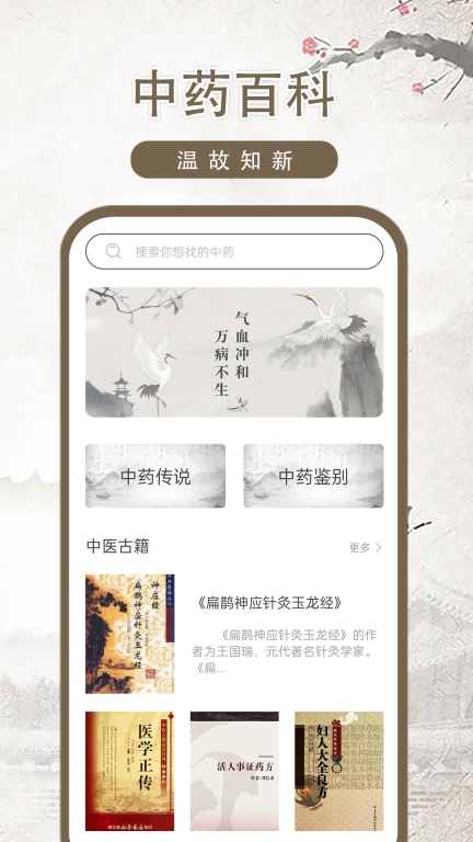 中医古籍收录了大量中药药材和历代可查方剂,其中还包含了中药传说、中药鉴别、中医古籍了解(不具备书籍阅读),中药材图片鉴赏。 【中药传说】 中草药文化源远流长,为了加深后人印象,不断丰富其传说故事。 【中药鉴别】 提供技术药材药性鉴别方法,让您对药物的了解更深一层。 【中药方剂】 收录了大量历代可查方剂,详情包含来源、服用方法、功效、注意事项以及改方剂的出处等内容。 【中医古籍】 收录了大量历代精华中药书籍,让你可以有机会了解有关于中药的更多魅力!