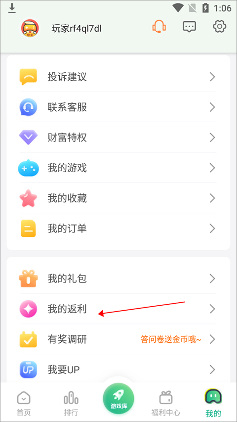 6、游戏相关返利可以进入【我的】页面中的【我的返利】中进行查看