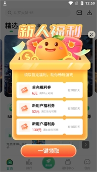 1、新用户首次进入游戏后就可以领取平台的的新人福利