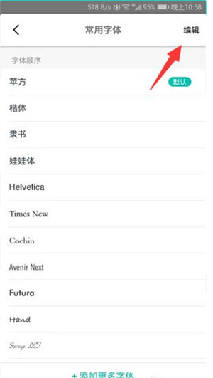 进入编辑页面后,在喜欢的字体后面按住三横杆拖动