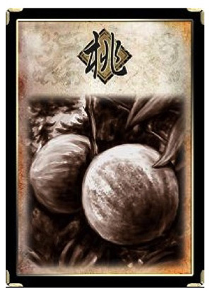 2、有人濒死时,打出一张【桃】此人恢复一点体力(桃子只能在别人要死的时候给别人吃,当然自己要死的时候可以给自己吃,这是自己回合外能使用桃子的情况)。