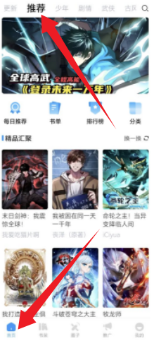 2、进入到软件首页,如图所示。首页便会呈现各类推荐漫画。
