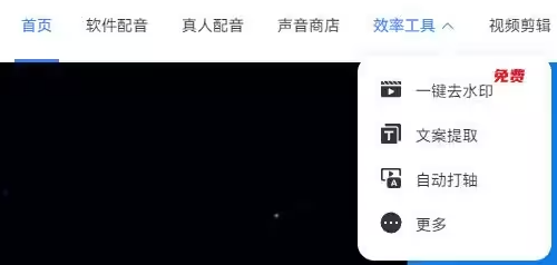 1.打开魔音工坊,点击顶部导航栏中的效率工具,在下拉选项下选择“一键去水印”按钮;
