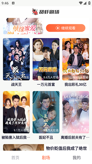 1. 丰富多元的短剧内容:甜虾剧场app囊括战神、甜宠、悬疑等各类短剧。