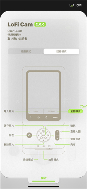 1. 开启LoFi Cam相机后,即可查看使用说明书。