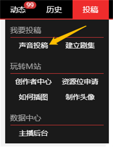 第一步:打开猫耳主页,点击声音投稿