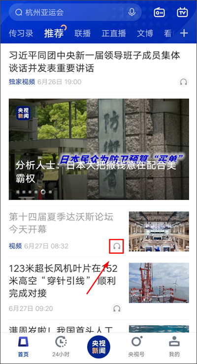 1. 先下载并打开新闻联播app,进入首页后,点击自己想听新闻的标题旁边的耳机图标就可以了。