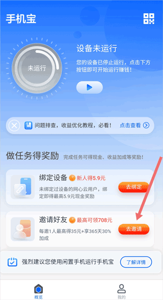 这里需要咱们把手机宝绑定在网心云APP(本站可免费下载)上,因为收益是在网心云APP上提现,不是在手机宝哦