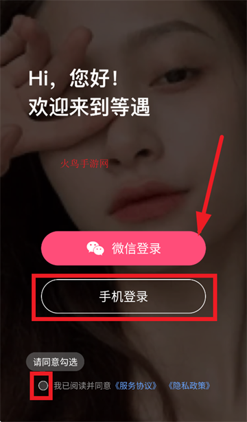 进入登录界面后勾选我已阅读并同意《服务协议》 《隐私政策》,点击手机登录