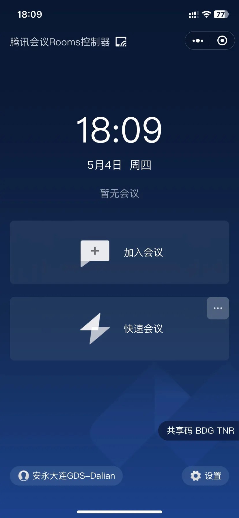 目前支持 iPadOS 和 Android 设备安装下载,请您在 App Store、小米、OPPO、华为平板应用市场搜索腾讯会议控制器,下载后与 Rooms 配对完成使用。