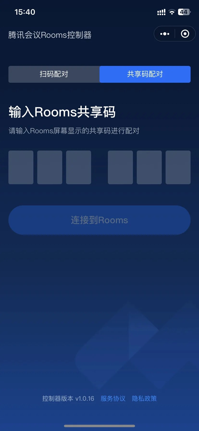 1、微信扫码:使用微信扫描Rooms右下方的配对二维码。