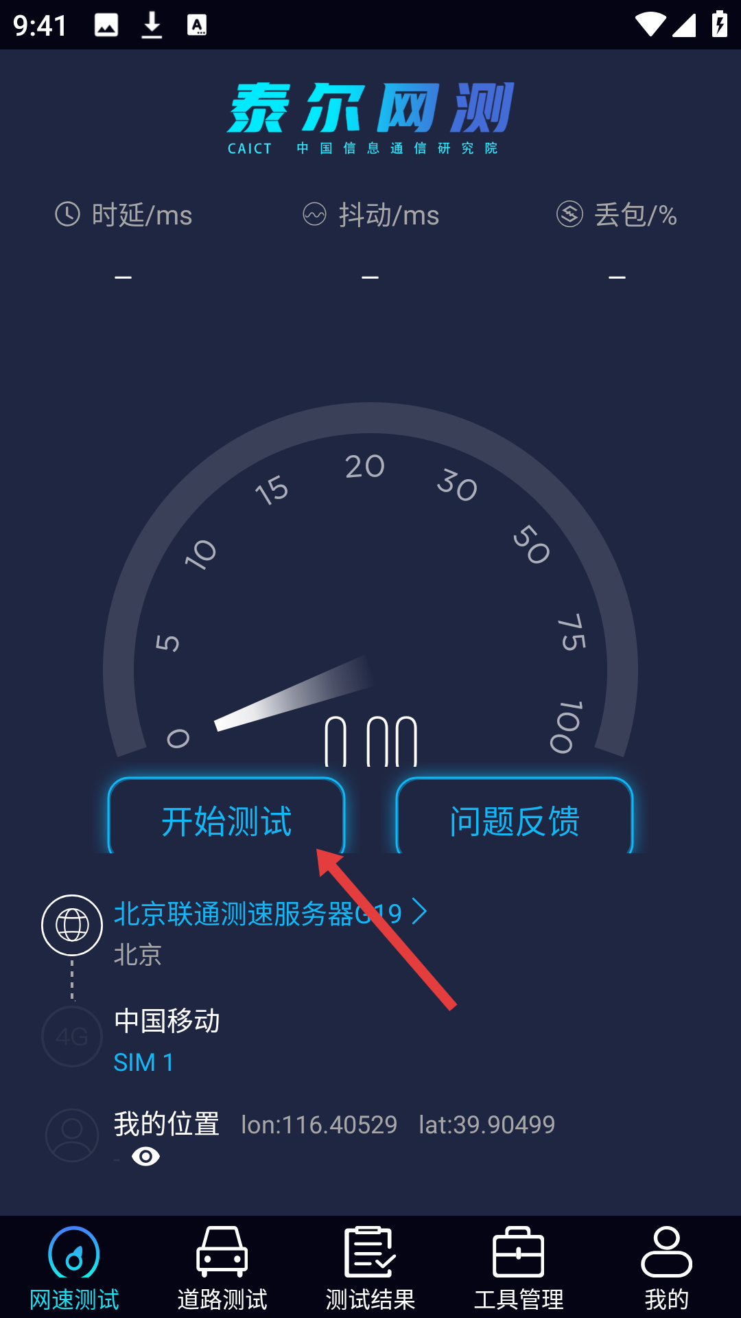 1. 在泰尔网测页面,点击【开始测试】,以此启动网络测速流程。