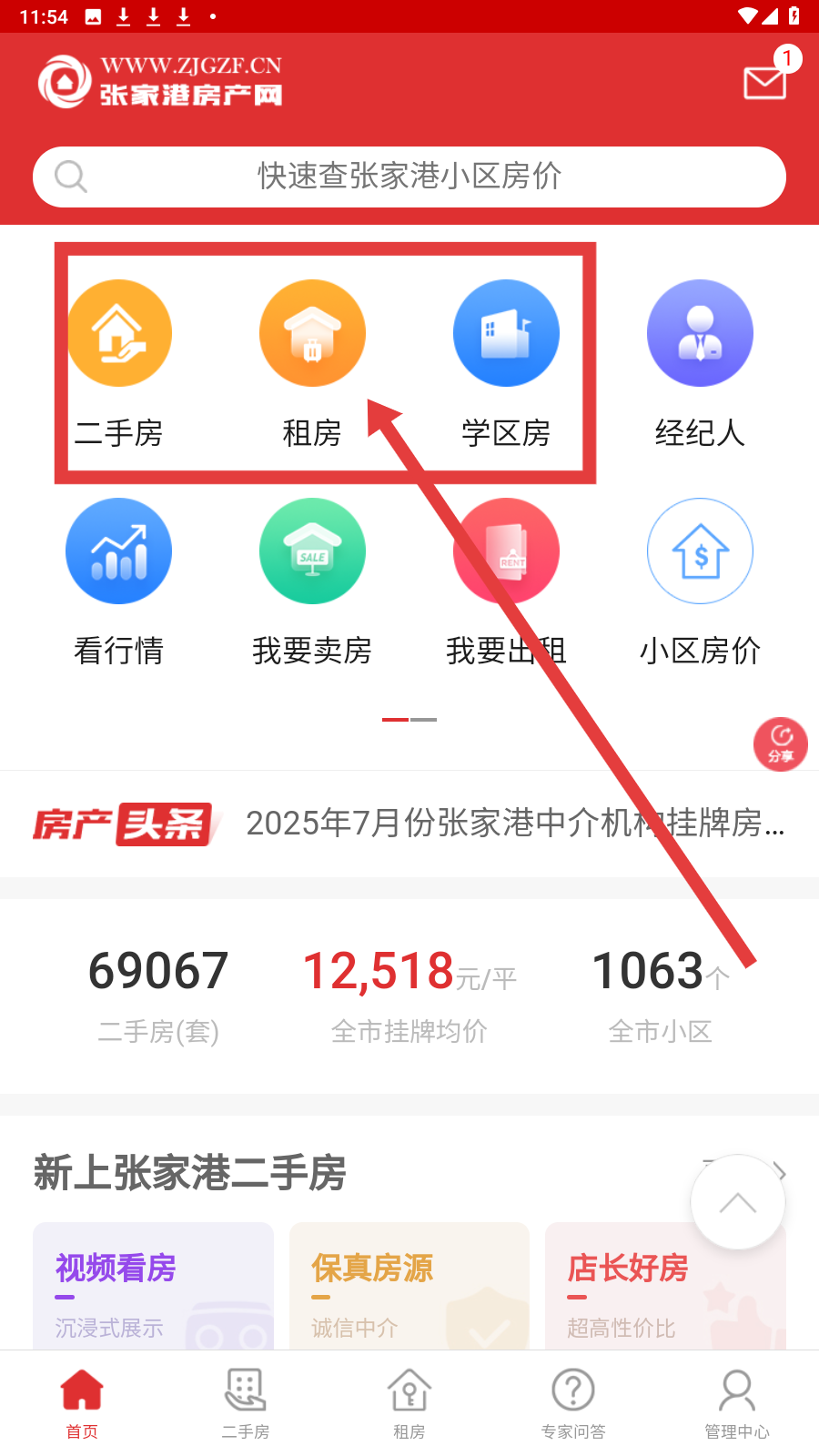 1. 开启【张家港房产网】,在首页点击【租房】图标,从而进入租房页面。