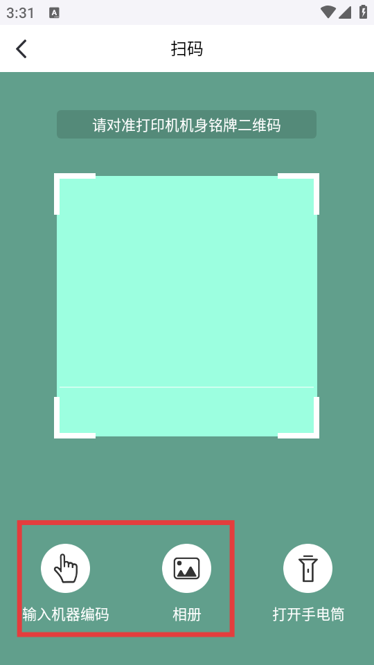 3、在扫码页面,若选择手动输入方式,点击【输入机器编码】按钮,进入手动添加页面。