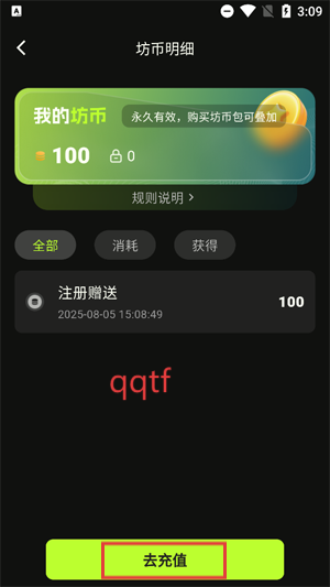 在坊币明细界面点击去充值。