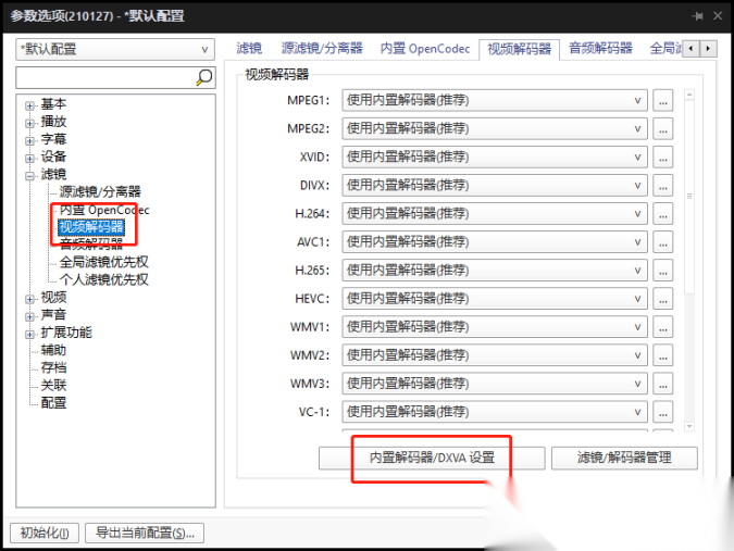 ”解码器/DXVA设置“。