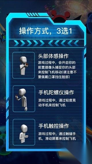 1、头部体感操作:开启前置摄像头捕捉面部动作,通过头部移动控制飞机(需注意不遮挡面部)。