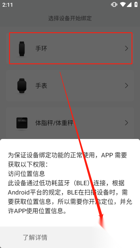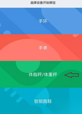 4、在弹出页面中,选择设备开始进行绑定,找到体脂秤/体重秤的图标。接着点击“搜索体重秤”,搜索过程中需把体重秤放置在手机附近。
