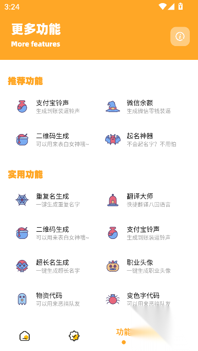 集成二维码生成器、起名神器、物资代码查询等实用小工具。