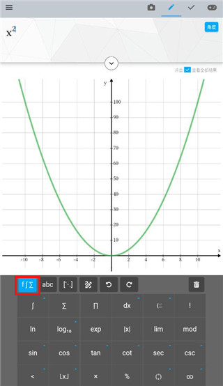 3、点击左上角的科学符号,还可以展开更多的数学符号