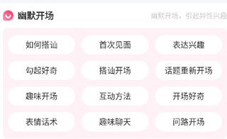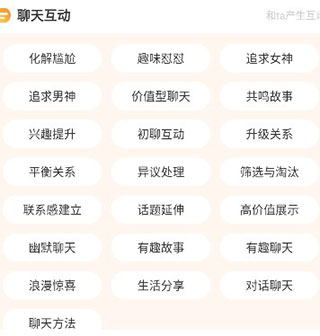 2、聊天互动包含化解尴尬、趣味怼怼、追求女神等模块,让你聊天更加得心应手。