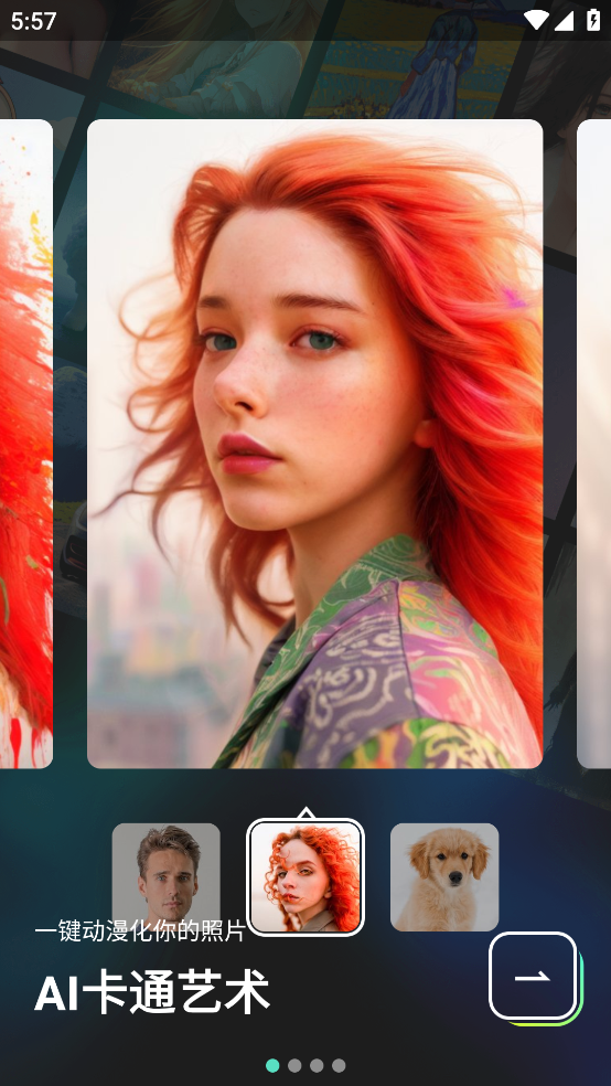 1. 一进入软件,便能看到多种画风介绍,无论是AI卡通,还是艺术类型,都一应俱全。