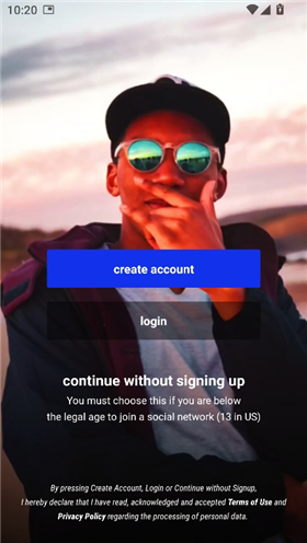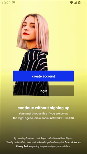 1、第一步,我们打开软件。如果您已有账号,可直接点击“login”登录;要是没有账号,那就先注册,点击“create account”即可完成注册操作。