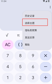 2、在这里,你也可以查看历史记录。点击“选择主题”选项。
