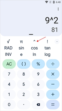 9、例如,若要求9的平方,用户可点击指数键。