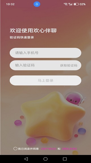 1. 安装完成后,进入登录界面,输入手机号码与验证码即可。