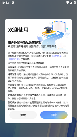 1. 下载并安装APP,点击‘同意’,即可进入下一页面;