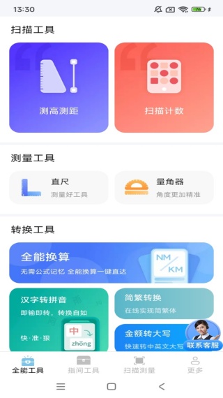 2、首页推送的功能多多,支持高度测量以及扫描计数、直尺以及量角器测量功能多。
